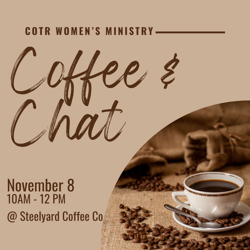 All women are invited to meet at Steelyard Coffee for a casual gathering on November 8 from 10 AM-12 PM. This will be a time to purchase your favorite drink or snack from the menu and get to know some other ladies. Feel free to invite a friend!